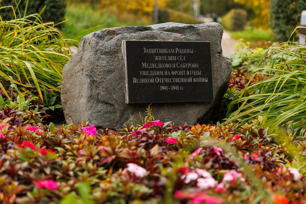 Памятный камень установлен в память о жителях деревень Медведково и Сабурово, призванных на фронт в годы Великой Отечественной войны 1941-1945 годов.