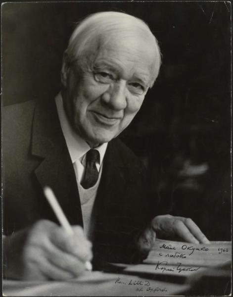 Чуковский Корней Иванович (настоящее имя — Николай Корнейчуков) — русский и советский поэт, публицист, литературный критик, переводчик и литературовед, детский писатель, журналист. Лауреат Ленинской премии (1962), кавалер ордена Ленина (1957). Родился 31 марта 1882 г. в Санкт-Петербурге. Настоящее имя — Николай Корнейчуков. Мать — крестьянка Екатерина Корнейчукова. Детство и юность прошли в Одессе, где он был исключён из гимназии в 1898 г. Самостоятельно овладел английским и французским языками. Литературную деятельность начал в 1901 г. в газете «Одесские новости». В 1903-1904 гг. работал корреспондентом в Лондоне. С 1905 г. жил в Петербурге. С 1906 г. сотрудничал как критик с журналом «Весы» и другими изданиями. В 1906 г. поселился в Куоккале (ныне Репино), где общался с И.Е. Репиным, М. Горьким, В.В. Маяковским. Здесь вёл рукописный альманах «Чукоккала» и начал переводить Уолта Уитмена. В 1916 г. по предложению Горького возглавил детский отдел издательства «Парус». После 1917 г. жил в Петрограде, участвовал в создании издательства «Всемирная литература» и «Дома искусств». В 1920-е гг. опубликовал знаменитые сказки: «Крокодил» (1917), «Мойдодыр» (1923), «Тараканище» (1923), «Муха-цокотуха» (1924), «Бармалей» (1925), «Айболит» (1929). В 1928 г. вышло первое издание его книги о детском языке «От двух до пяти». В конце 1920-х гг. его творчество подверглось резкой критике в газете «Правда», что заставило писателя публично отречься от некоторых сказок. С 1938 г. жил в Москве и на даче в Переделкине. В годы Великой Отечественной войны (1941-1943) находился в эвакуации в Ташкенте. После войны публиковал новые произведения («Краденое солнце», 1945) и продолжал работу над переводами. Автор фундаментального труда по теории перевода «Высокое искусство» и исследования «Мастерство Некрасова» (1952). В 1962 г. удостоен Ленинской премии. Имел учёную степень доктора филологических наук (1957) и почётное звание доктора литературы Оксфордского университета (1962). Являлся кавалером ордена Ленина (1957). Признан самым издаваемым автором детской литературы в СССР и России.