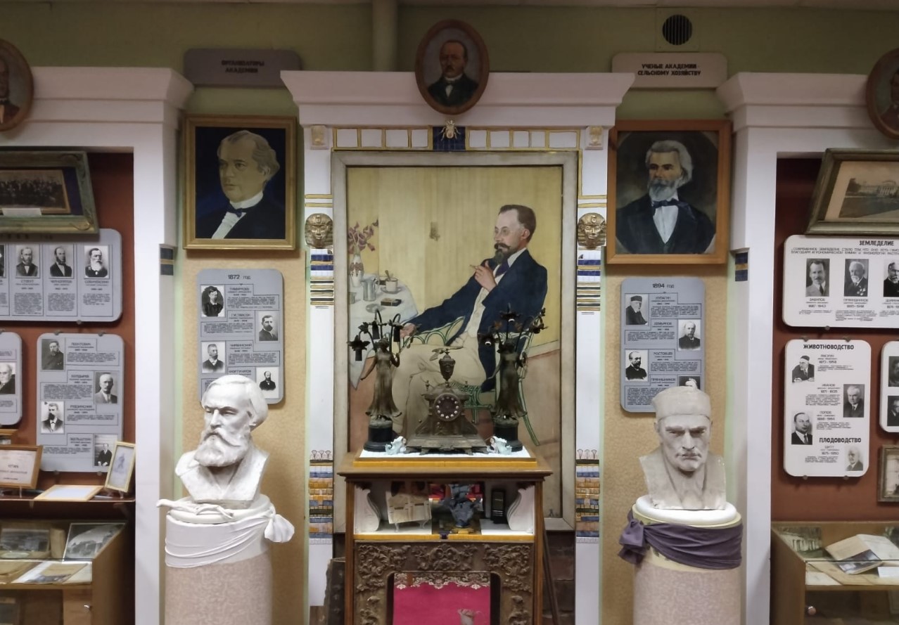 В самом центре университетского городка, в старинном Ивероновском саду, находится ярко-красное здание музея Истории Тимирязевской академии. У музея есть два филиала: центр имени Н.И. Вавилова и кабинет-музей Растениеводства, открытые в 2013 и 2014 гг. Это внутриведомственный музей, созданный для проведения лекций студентам, аспирантам и школьникам. Его главная задача — сохранение и популяризация истории вуза, судеб выпускников и преподавателей, сбор фототеки и архивных документов. Музей разместился в здании 1806 г. постройки, бывшем музее минералогии графов Разумовских, которое после реконструкции в 1985 г. стало его домом. Красный цвет фасадов — память о военном знамени, ведь музей зарождался как комната Боевой славы в годы Великой Отечественной войны. История музея началась с инициативной группы, которую в 1958 г. составили вдовы фронтовиков-тимирязевцев. Душой дела стала Ефросинья Кузьминична Орлова. В 1965 г. был открыт памятник Павшим Тимирязевцам, а собранные для него документы и предметы легли в основу будущего музея. В 1977 г. Орлова открыла Комнату Боевой Славы, а спустя восемь лет на её основе появился музей всего учебного заведения. При поддержке ректора и героя Советского Союза Орлова добилась у Л.И. Брежнева отдельного здания. Военный зал музея сегодня носит её имя. Официальное название «Музей Боевой и Трудовой славы» академия получила в 1985 г. Автором первой экспозиции и основателем архива стала Ольга Николаевна Бычкова, которая вместе соратницами создала залы «Древо академии», Военный, Репрессированных, Профессорский. Позже, с расширением тематики, в 1995 г. музей переименовали в Музей Истории академии. С 2000-х г. началась оцифровка архива, а в 2007 г. возникло Общество друзей музея. Здесь реализована концепция «открытого хранения», когда все экспонаты находятся в экспозиции, а не в запасниках. Музей проводит посетителя через все вехи университетской территории от XVI века до наших дней. Помещения воссоздают обстановку профессорской квартиры прошлого века. Вводный «Разумовский» зал рассказывает об истории земель от пустоши до учебного городка. Зал «Древо университета», стилизованный под старую лекционную аудиторию, раскрывает историю академии с 1865 г. Главный символ здесь — стенд-родословное древо вуза. «Профессорская гостиная» наполнена старинной мебелью из домов учёных, роялем Ф.И. Шаляпина, столом М.И. Цветаевой и рассказывает о «Золотом веке» академии. На втором этаже находится Зал Военной славы имени Е.К. Орловой, посвящённый Первой мировой и Великой Отечественной войне. Одна сторона зала показывает фронтовую жизнь, другая — работу вуза в тылу, включая историю крупного военного госпиталя. В зале «Кабинет учёного» вспоминают преподавателей, а «Уголок студента» раскрывает повседневную жизнь учащихся через спорт, кружки и воссозданную комнату 1930-х г. Ивероновский сад, заложенный в 1784 г., является подшефным музею и продолжением экспозиции под открытым небом. Здесь растут старинные липы и дубы, посаженные историком Н. Карамзиным, писателем Л. Толстым и другими известными личностями. В музее можно увидеть старейшую книгу академии, узнать крестьянские приёмы ухода за огородом, изучить монументальное «Древо академии» и познакомиться со способами запоминания лекций профессора И.А. Стебута.